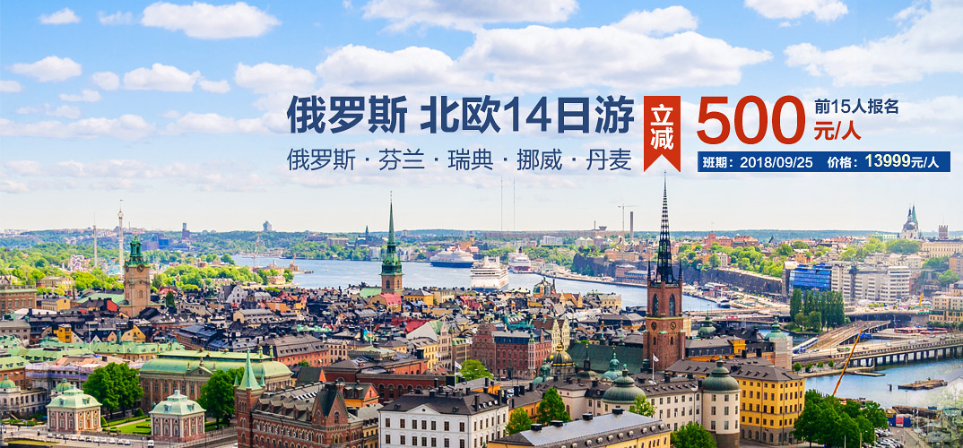 3.北欧段午晚餐为团队标准中式餐(餐标:五菜一汤,饭前茶水,饭后水果)或当地西餐;俄罗斯段八菜一汤;酒店含自助早餐。